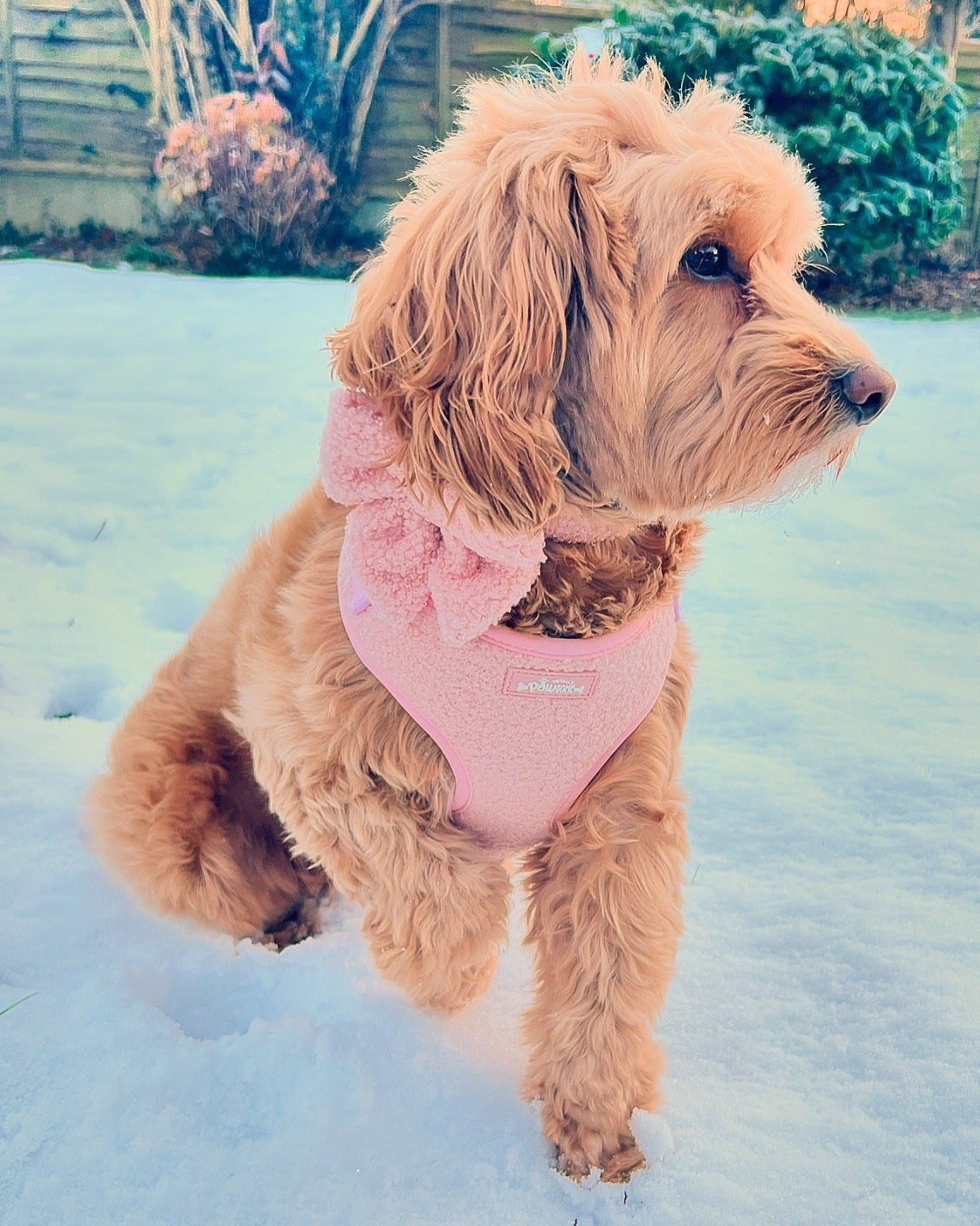 Marshmallow Pink Teddy - 6 Piece Bundle - Dog Harness, Collar, Lead & Poop Bag Holder, Bandana & Bow tie